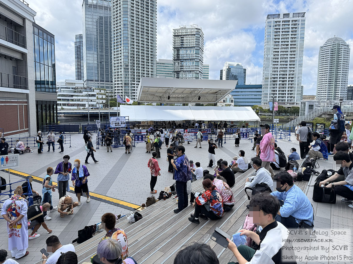 당시 현재기온이 26도였으니 줄줄 흐르는 땀을 닦으면서 조금 벽에 기대 쉬고 있었는데, 저 멀리 검은옷을 입은 사람들이 한무리 지나가더니 라이브 대기열 점검을 하면서 공연장 내 음악이 흘러나오기 시작하더군요.