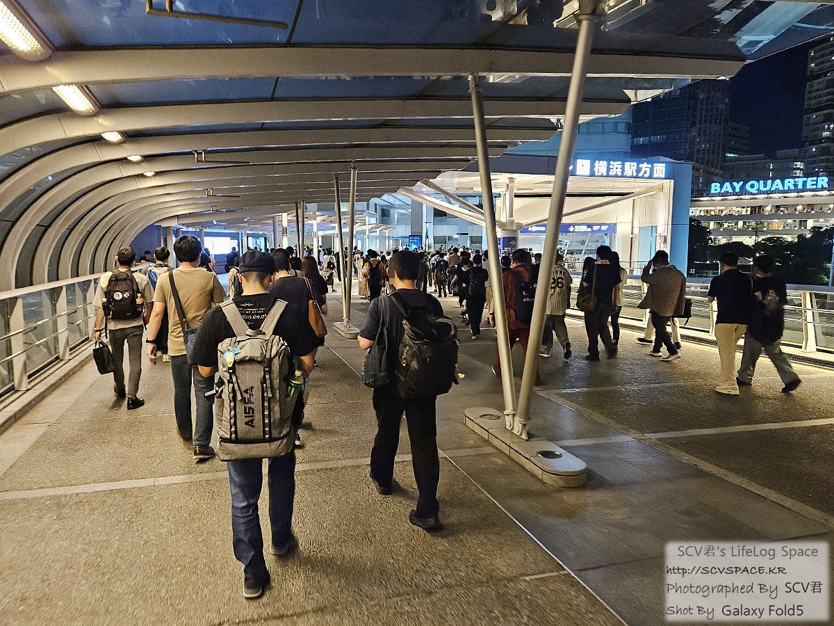 열차로 이동하려고 보행통로 따라 요코하마역으로 가는 길.