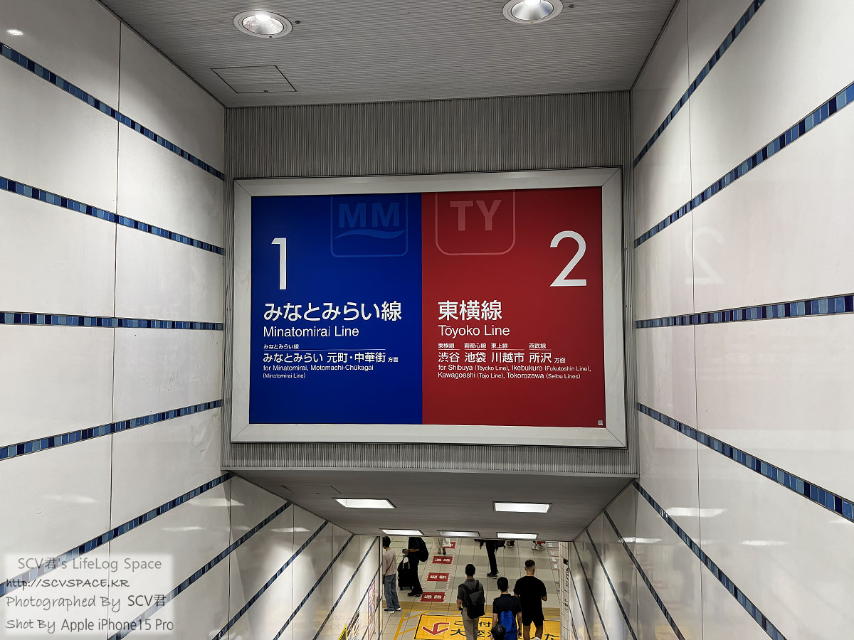 요코하마역까지의 최단경로인 보행교를 거쳐서 이동하는 중