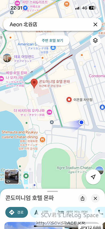지도에서 조금 떨어진 곳에 오늘 체크인할 콘도가 보이니 안심이 되네요.