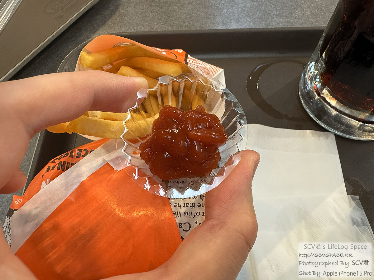 버거는 평범했고, 감자튀김에 곁들여 먹은 케찹이 꽤 맛있었던 기억.