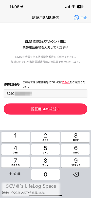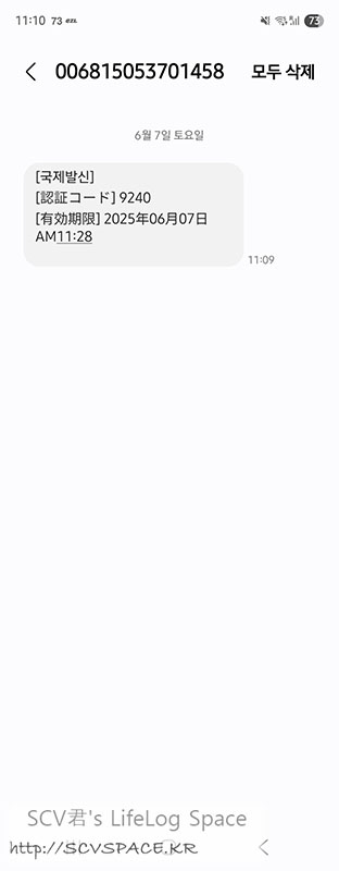 보시다시피 한국 전화번호를 넣고 다음을 눌러도 국제SMS로 인증번호가 옵니다.