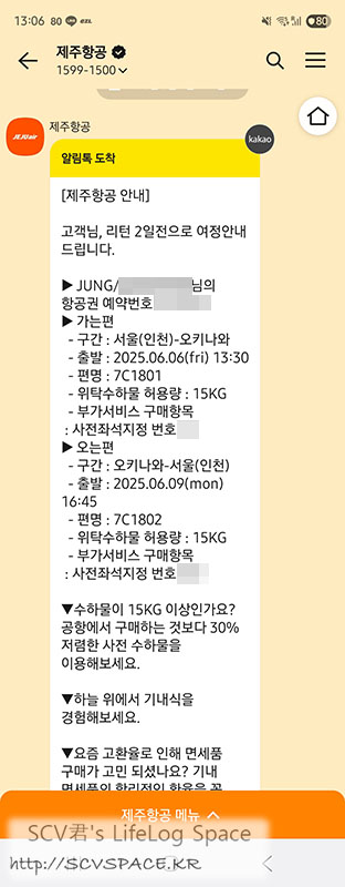 그 와중에 눈치없이(?) 귀국편이 다가온다는 알림도 오고..