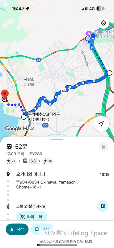 그도 그럴게, 45분 걸려 자전거 반납하고 혹시나 해서 '여기까지 버스타고 올수는 있나?' 하며 찾아보니