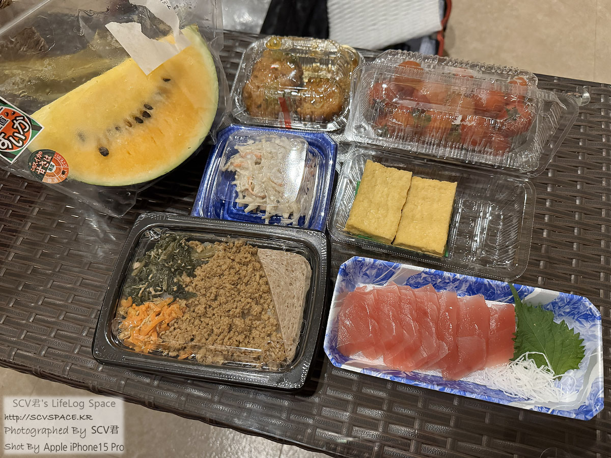 이날은 이런걸 샀습니다. 수박, 참치 빼고는 다 반액으로 산 것들. 총 1,783엔.