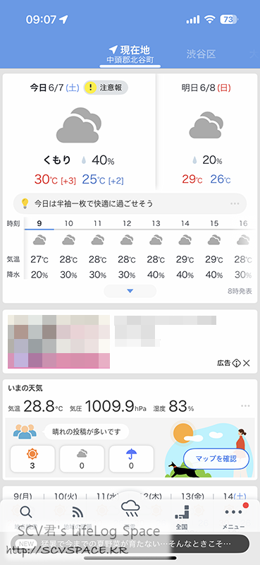전날 습도 때문에 그렇게 고생해서 일어나자마자 날씨부터 확인했는데, 아침 9시 현재기온 29도에 습도 80%...