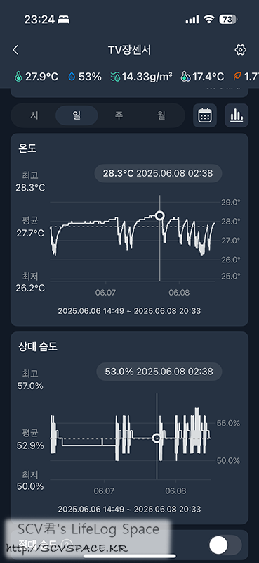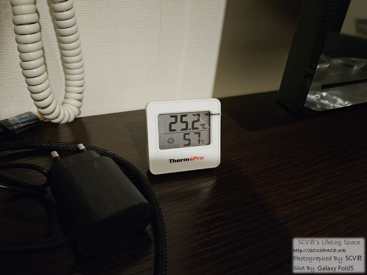 아침에 제습기 물통 비우고 가서 저렇게 적당한 온습도로 방이 유지되고 있었습니다.