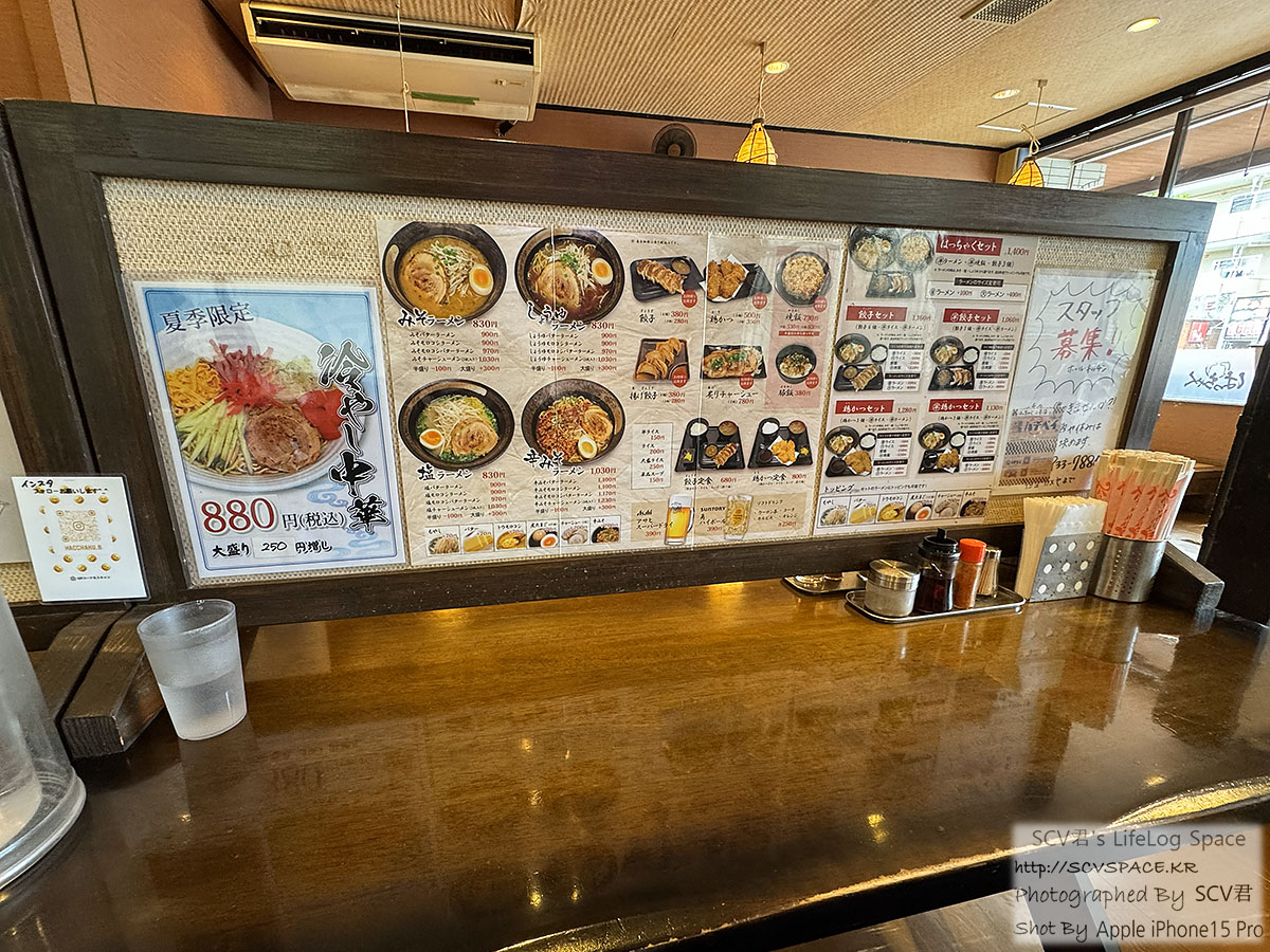 저는 사진 세번째 맨 위에 있는 핫챠쿠 세트에서 시오라멘 보통 변경(원래 절반 사이즈), 모야시/챠슈 추가.