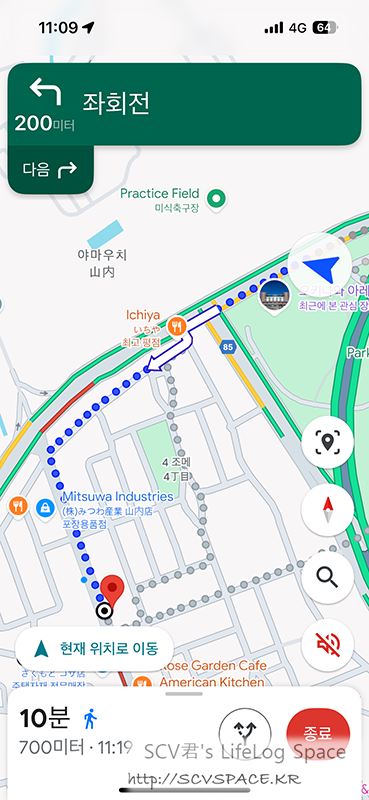 구글 지도 안내 길 중간이 이렇게 막혀있기도 했지만, 대부분은 쭉쭉 달려나가면 되서 꽤 시원하게 이동했네요.