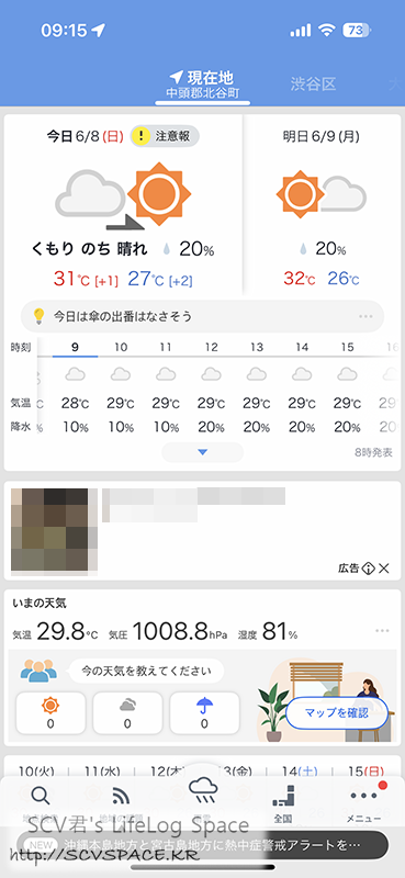 여기 오고부턴 걱정반 걱정반으로 일어나면 날씨부터 보는데, 9시에 30도 80%. 오늘도 즐겁겠네요.