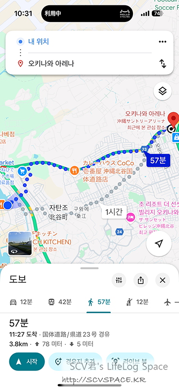 ...그래서 아래쪽의 이온몰 자전거 스테이션으로 가기로 결정. 다만 구글지도상 도보 45분 걸린다고 찍혔기 때문에
