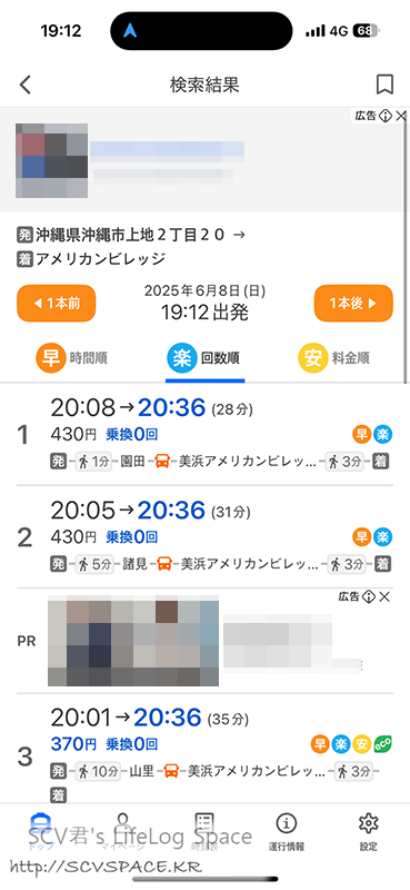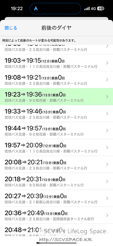 아까 이온으로 버스타기 전에 숙소까지 바로 버스로 이동하면 가장 빠른 도착 예정시간이 20:36분으로 떴던거 기억하시나요.