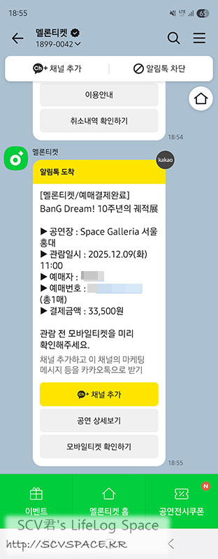 입장은 디지털 티켓이고 멜론티켓 앱 설치가 필요한데, 그냥 설치하면 티켓이 표시되는 구조라 생각보다는 편하더군요.