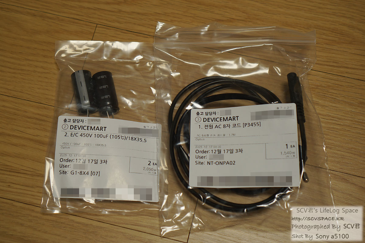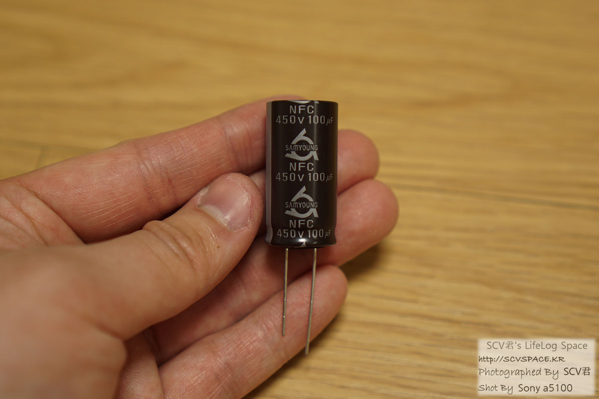 콘덴서는 먼저 링크한 DVD프라임 글에 언급된 400V 100uF 에 만족하는 450V 100uF 105℃ 제품 [상품페이지]