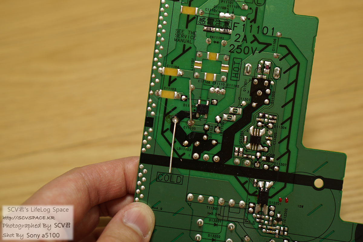 전면 디스플레이를 고정하는 프레임 위쪽도 같이 빼셔야 전원부 기판 분해가 쉬울 겁니다. 안그러고 하려니 뺄때 걸리는게 많던.