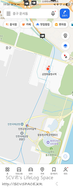 아직 현재위치 인식중이라 날씨는 출발지 위치.