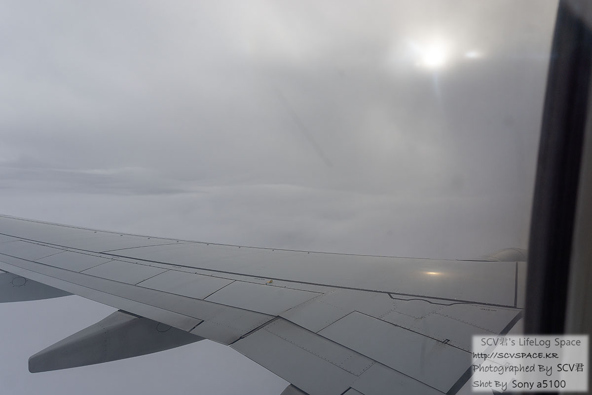 한국 흐림예보 있으니 가까워지면 구름이 좀 많아지겠지 정도 생각하면서 이륙하는걸 지켜봤습니다.