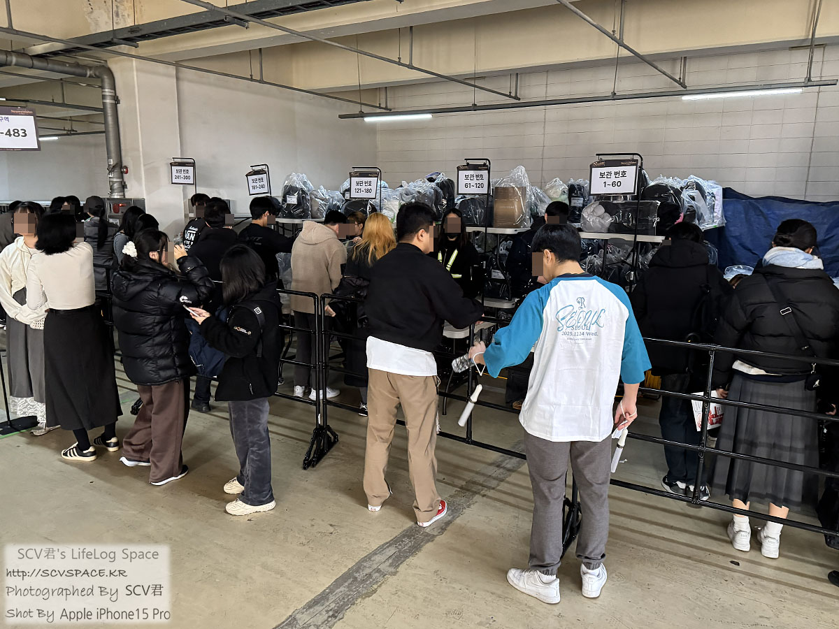 입구의 저 줄부터 경사로를 따라 쭉 사람들이 줄서있고 그게 먼저 본 굿즈판매 구역 앞쪽까지 이어져 있는 겁니다.
