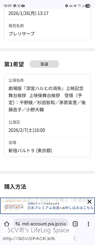 19시에는 신주쿠 피카데리에서 외화 더빙작 유료 시사회를 볼 겁니다(오오하시 아야카)