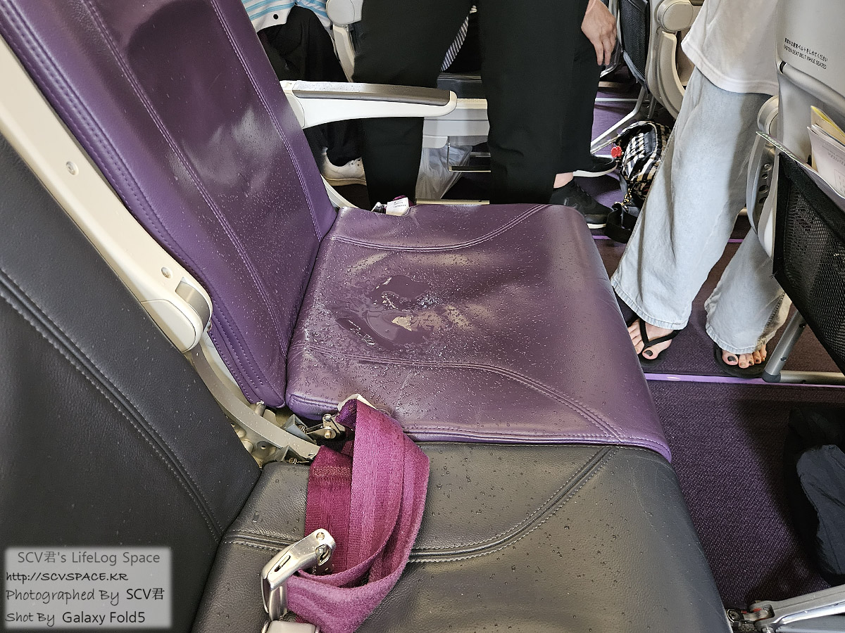 근데 왠 물이 떨어지길래 '피치 너 요즘 이래?' 5초정도 생각했는데, 승무원이 짐칸 둘러보더니 손님을 찾더군요.