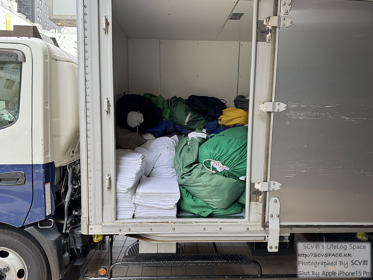 아마 세탁물 운반 트럭이지 싶습니다. 하루에 얼마나 실어나르는걸까(...)