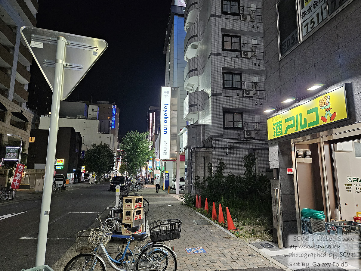 이런 구도에서 보면 나름 조용한데, 토요코인 바로 옆이 캬바쿠라라던가 제 뒤쪽은 사거리에 호객꾼 있고.