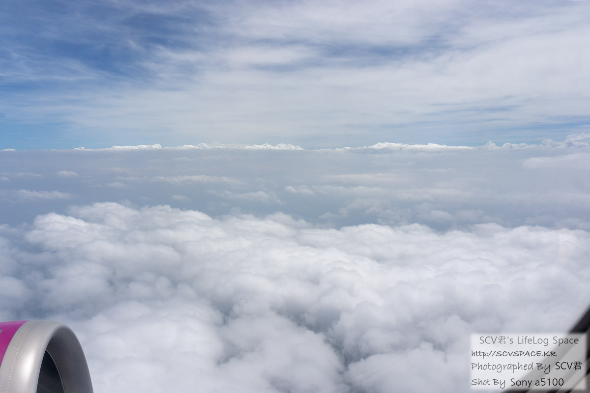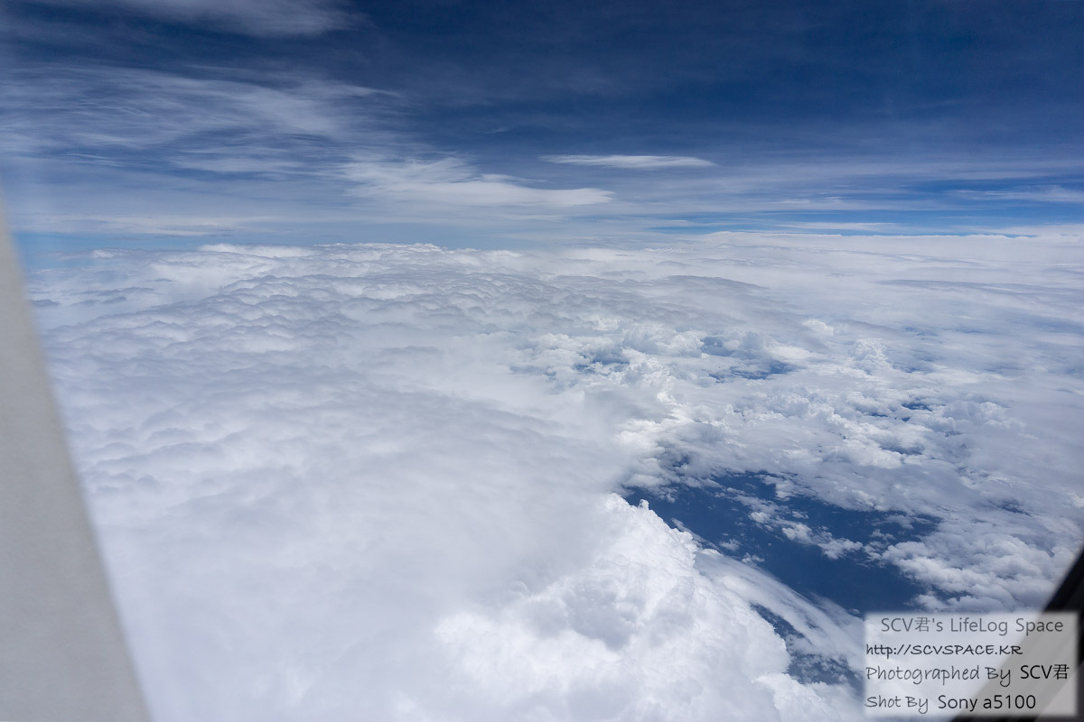 장마전선 뚫고 지나올 때에는 이렇게 주욱 펼쳐진 구름 위를 날기도 했구요.