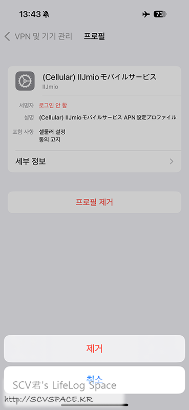 언제나처럼 이 즈음 현지 통신망 접속에 필요한 프로파일을 지웁니다.