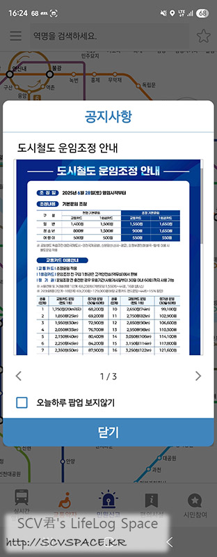 열차 어디에 있더라 현재위치 조회하려고 보니 다음달부터 지하철 요금 오르는 공지가 있더군요.