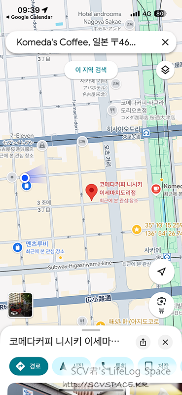 도착했습니다. 코메다 커피 니시키 이세마치도리점 [구글지도, 점포정보]