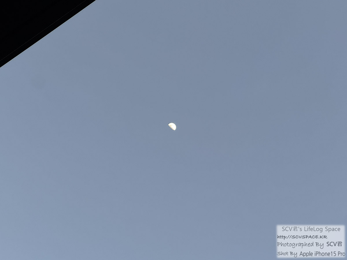 퇴근길에 하늘에 구름하나 없어 올려다봤는데 선명히 달이 보여서 한컷.