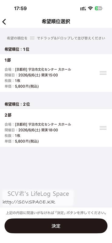 최종적으로 여기서 공연 희망순위를 지정하면 절차가 마무리됩니다.