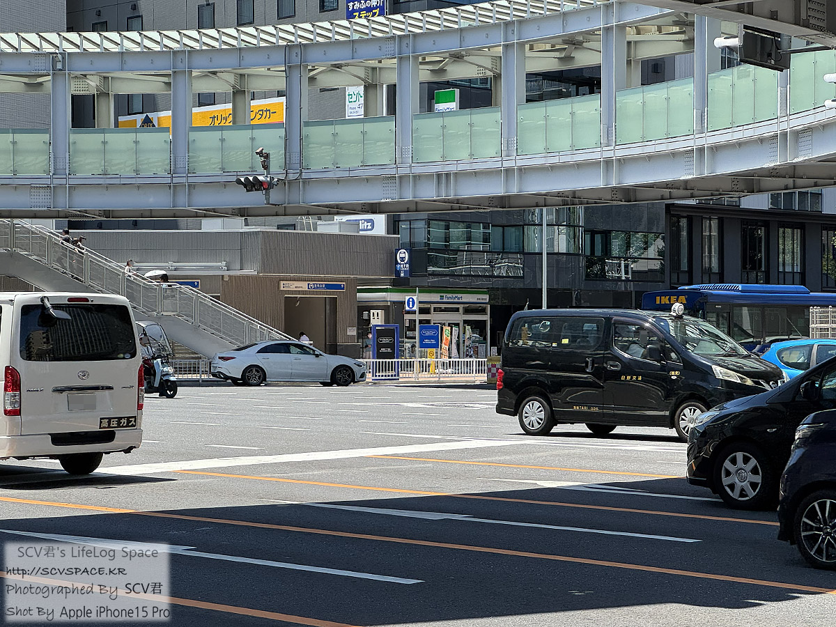 오른쪽은 보행로인데, 역에서 빠져나오는 사람들이 많은 와중에 다들 햇볕 피해서 그늘막 아래로만 가던 상황.