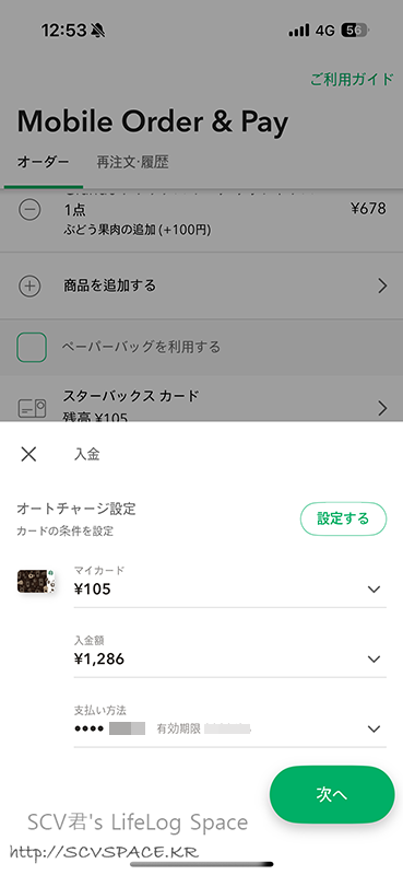 최종 결제시 카드로 충전할 금액을 직접 입력할 수 있어서, 잔액 0엔으로 끝나게 계산한 금액 적고 넘어갔습니다.