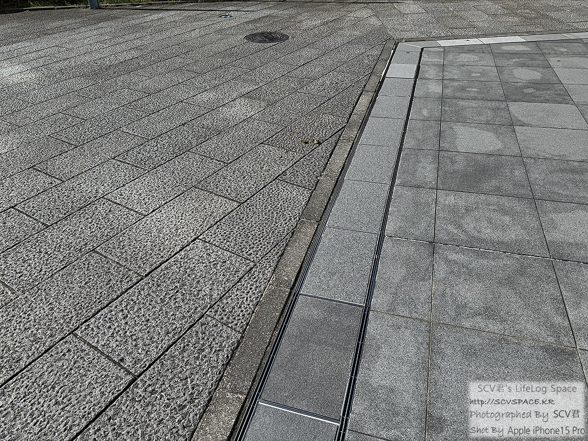 조금 더 가다보니 미끄럼 방지 목적인지 오른쪽 사진의 왼쪽같은 울퉁불퉁한 보도블럭이 주류였는데, 캐리어 바퀴때문에 부담되던.