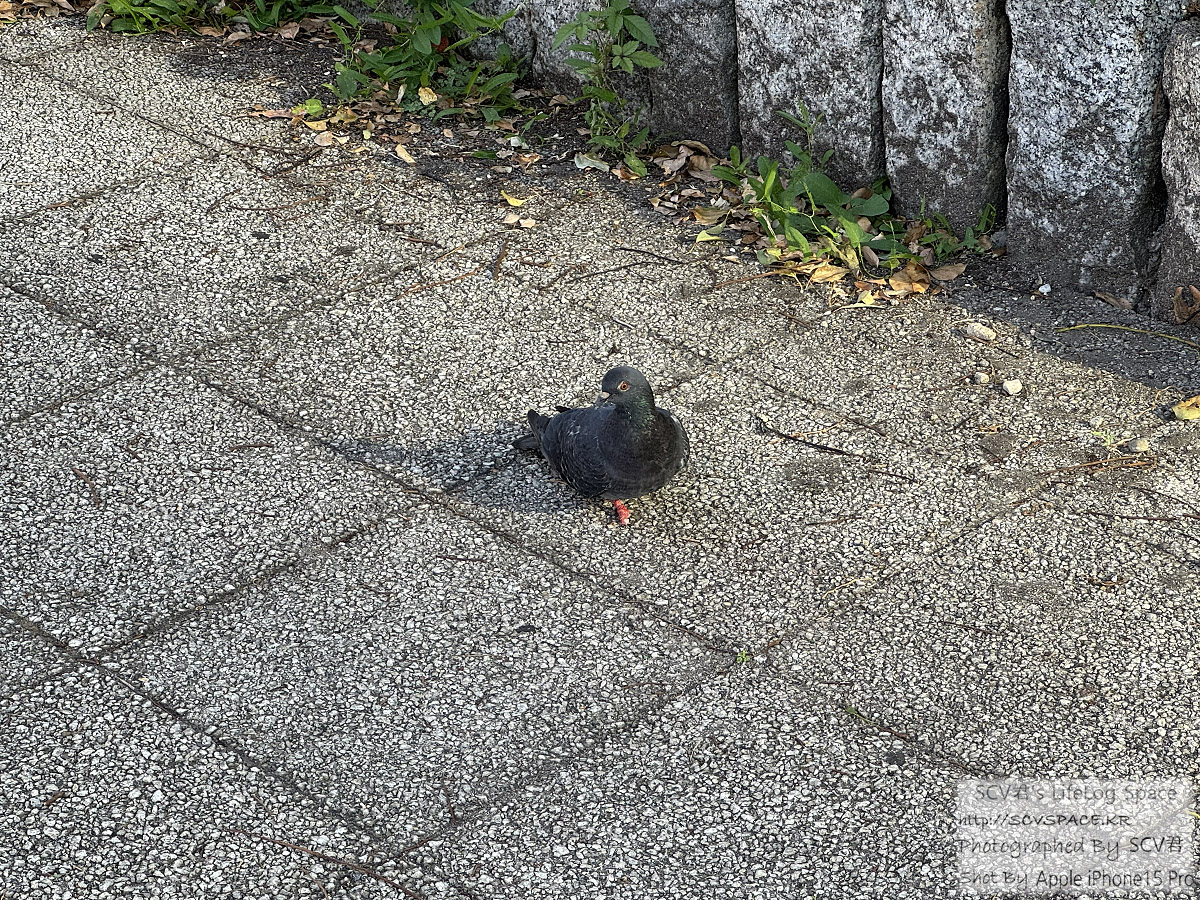 그 와중에 닭둘기 한마리. 색이 검어서 더 덥겠구나.