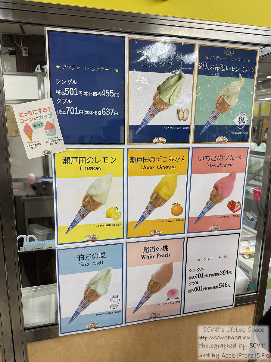 오른쪽은 히로시마가 본사인 시마나미 돌체[しまなみドルチェ, 홈페이지] 의 젤라또.
