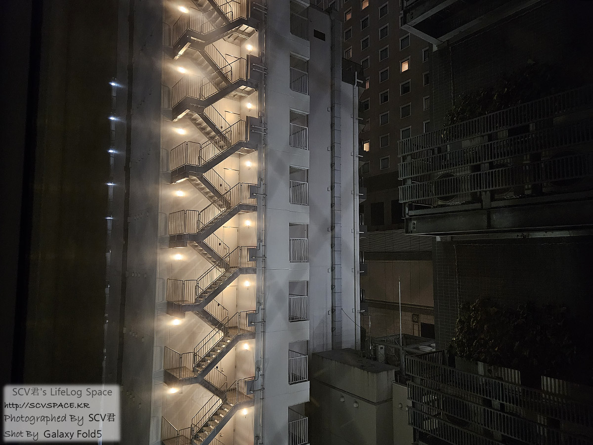 오른쪽 사진은 제빙기 보고 복도 끝 창문에서 본 건물 맞은편.