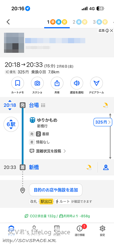 저렇게 경로에 레인보우 버스를 끼는 루트가 일단 야후 환승정보 앱에서는 검색이 안되서 (열차대비 돌아가는 길이니)