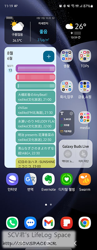 기존 홈 화면 구성 중에서 맨 오른쪽이 좀 쓸떼없는 여백(?)이 많았던지라 그쪽을 좀 정리했습니다.